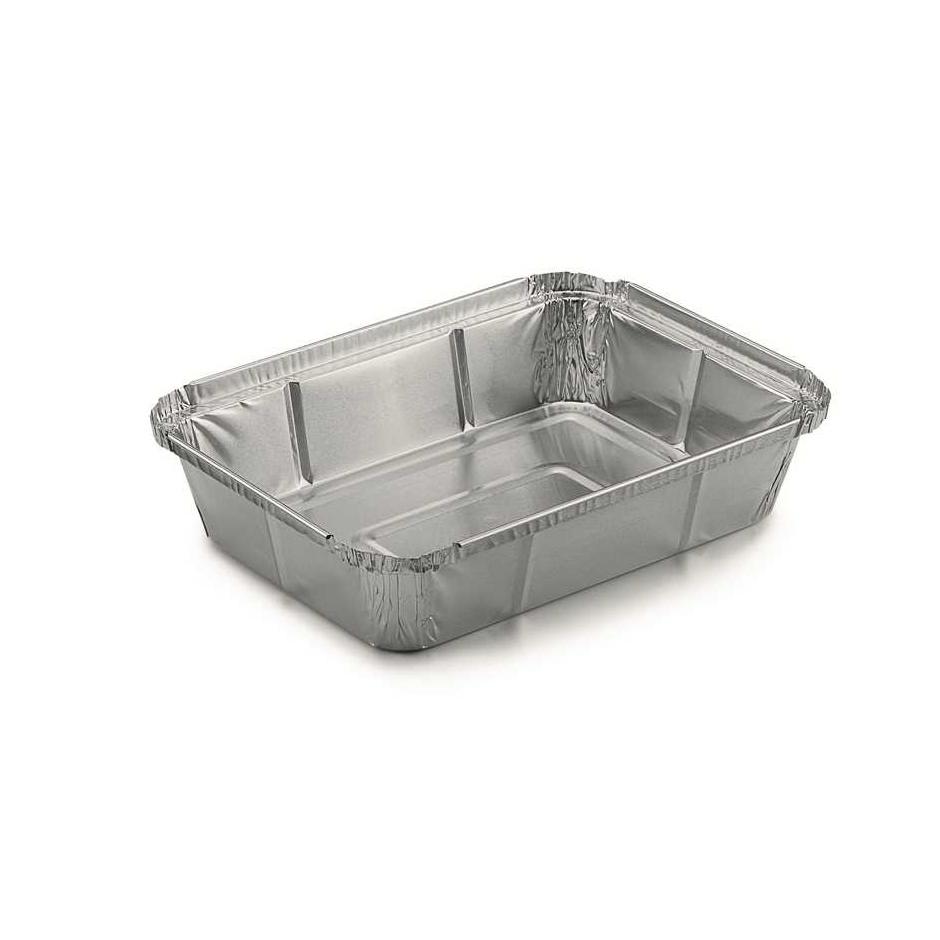 Fabricados en aluminio alimentario de alta calidad, estos envases ofrecen una excelente resistencia térmica y estructural, siendo ideales para platos preparados, asados, pastas, arroces, carnes, pescados o menús completos. Su capacidad de 900 cc permite una ración equilibrada, manteniendo la presentación y facilitando el transporte sin derrames.